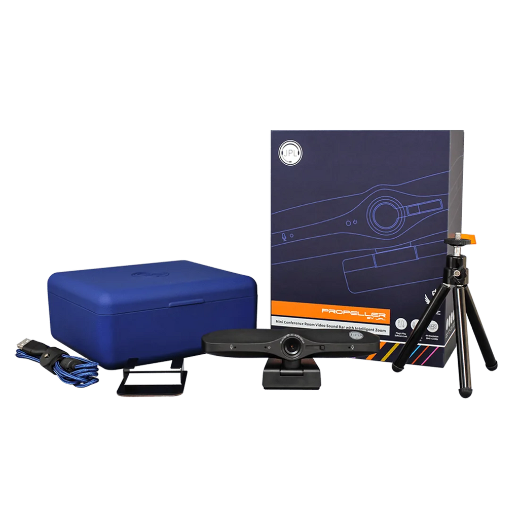 The JPL Spitfire Mini Conference Room Video Sound Bar comes with a full HD glass lens, integrated privacy lens shutter and a USB-A to USB-C adapter to allow optional connection to any USB-C device.