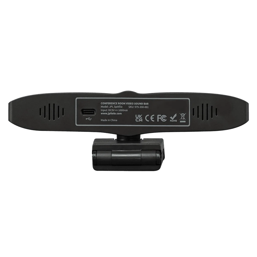 The JPL Spitfire is a mini conference room video sound bar designed for seamless, high-quality collaboration in modern workplaces, classrooms, and remote environments. Featuring 4K Ultra HD resolution (3840 x 2160p), intelligent AI-powered zoom, and a 96° field of view, it automatically adjusts to focus on participants in the room, ensuring everyone stays in frame. The Spitfire integrates dual stereo duplex microphones with a 5-meter voice pickup range, providing crystal-clear audio with automatic noise suppression and echo cancellation. Its sleek, plug-and-play design connects via USB-A or USB-C without the need for additional software or power adapters.